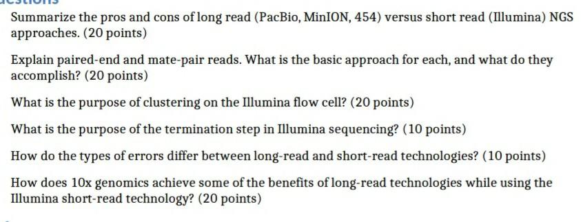 Solved Summarize The Pros And Cons Of Long Read Pacbio Chegg Com